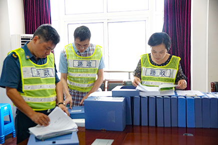 圖為檢查內(nèi)業(yè)資料現(xiàn)場(chǎng)