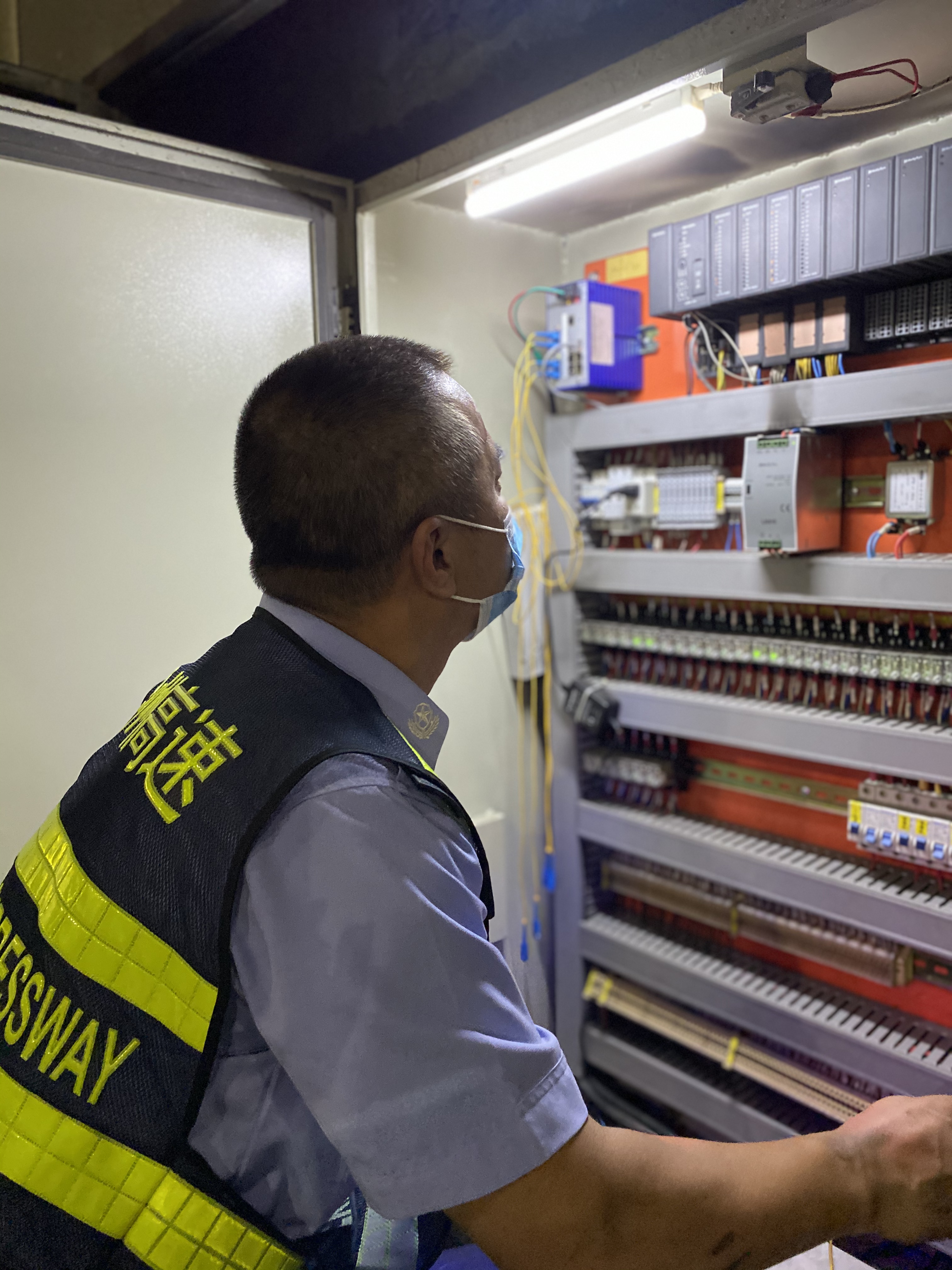 雖然隧道內(nèi)沒有烈日的灼燒,但日均4萬的車流,加上尾氣排放,導致隧道內(nèi)的氣溫遠高于室外。當室外37°C時,整個隧道里宛如一個蒸籠。盡管如此,廣場上、電纜溝上隨時都有執(zhí)勤隊員忙碌的身影。他們來回徒步穿梭于隧道,檢查指示燈、消防設備箱、緊急電話、火災報警等設施設備,排查各類安全隱患,修復受損設備,處理各種突發(fā)情況。一趟下來臉和胳膊被熏得黝黑,口罩、衣服濕了又干、干了又濕,盡管工作量大、強度高,他們從不喊苦說累。