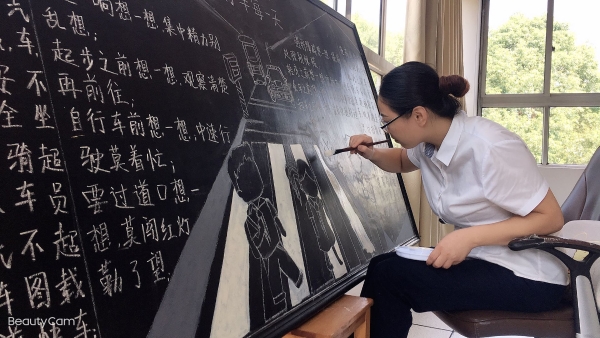 活動(dòng)前期,臨海南收費(fèi)所臨時(shí)組建五人板報(bào)小分隊(duì),充分利用空余時(shí)間搜集有關(guān)安全教育資料,對(duì)內(nèi)容、畫面進(jìn)行認(rèn)真整理、篩選。最終決定三個(gè)板塊,以提高安全教育為目的,以不同風(fēng)格主題來(lái)呈現(xiàn),從多方面、多角度設(shè)計(jì)與繪制,達(dá)到了更好的安全教育宣傳效果。 活動(dòng)開(kāi)展后,參與者們分配好各自的任務(wù)后,出黑板報(bào)的工作便熱火朝天地展開(kāi)了。大家利用自身的特長(zhǎng),通過(guò)粉筆字、繪畫等藝術(shù)形式,對(duì)黑板報(bào)進(jìn)行了精心的設(shè)計(jì),主題鮮明,內(nèi)容充實(shí),圖文并茂,趣味性強(qiáng),全方位、多角度地宣傳了《消防安全》、《食品安全》、《交通安全》三大主題。其中在交通安全宣傳方面,如何使交通安全內(nèi)容,更加直觀形象、簡(jiǎn)單易懂的、眾人易于接受呢?大家通過(guò)反復(fù)嘗試,決定打破傳統(tǒng)模式,避免枯燥說(shuō)教,把交通宣傳教育知識(shí)融入到兒歌中,通過(guò)朗朗上口的兒歌形式,傳達(dá)一些基本的交通規(guī)則,幫助大家養(yǎng)成自覺(jué)遵守交通規(guī)則的意識(shí),提高自我安全防護(hù)能力。最后經(jīng)過(guò)大家日夜趕工,黑板報(bào)的工作在大家的共同努力下順利完成。