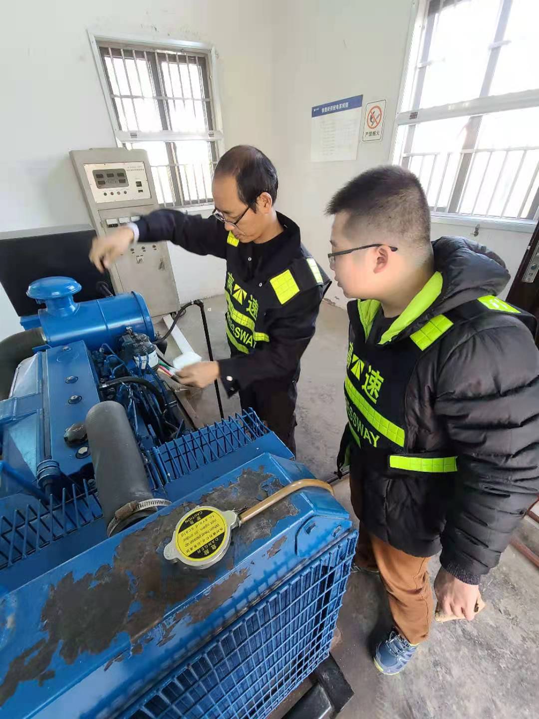 (圖為工作人員在對發(fā)電機(jī)巡檢)